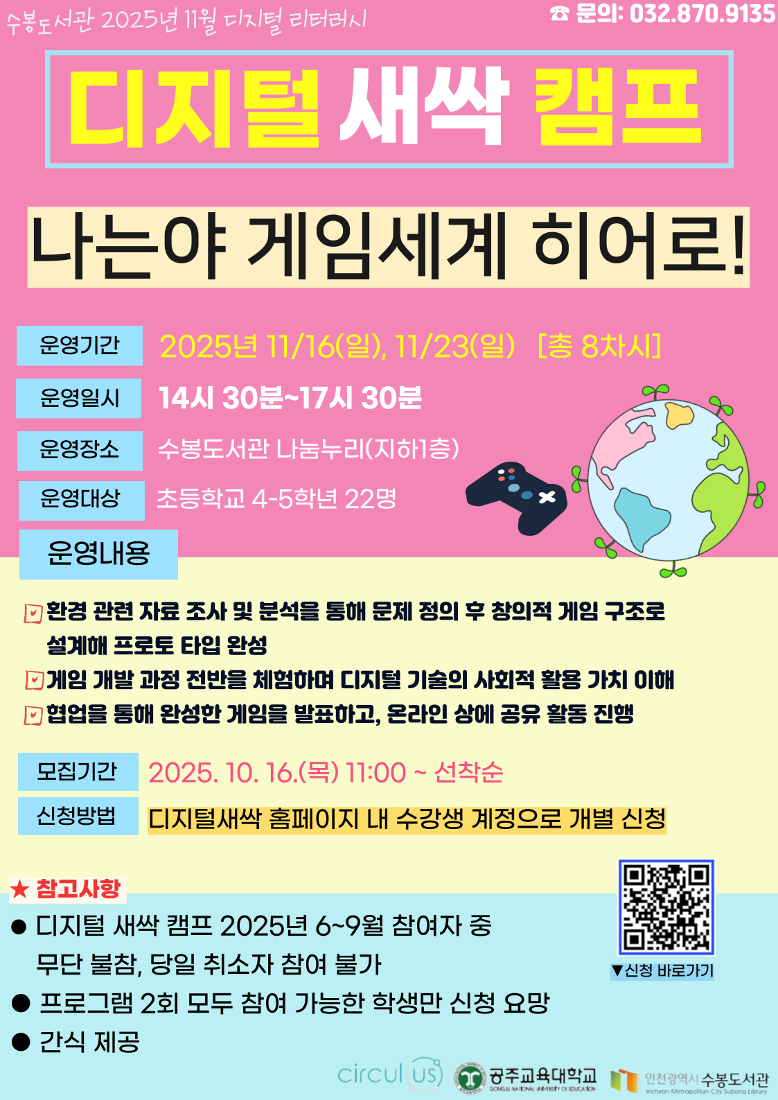 모집│디지털새싹 캠프 11월 1차 <나는야 게임세계 히어로> 참여자 모집