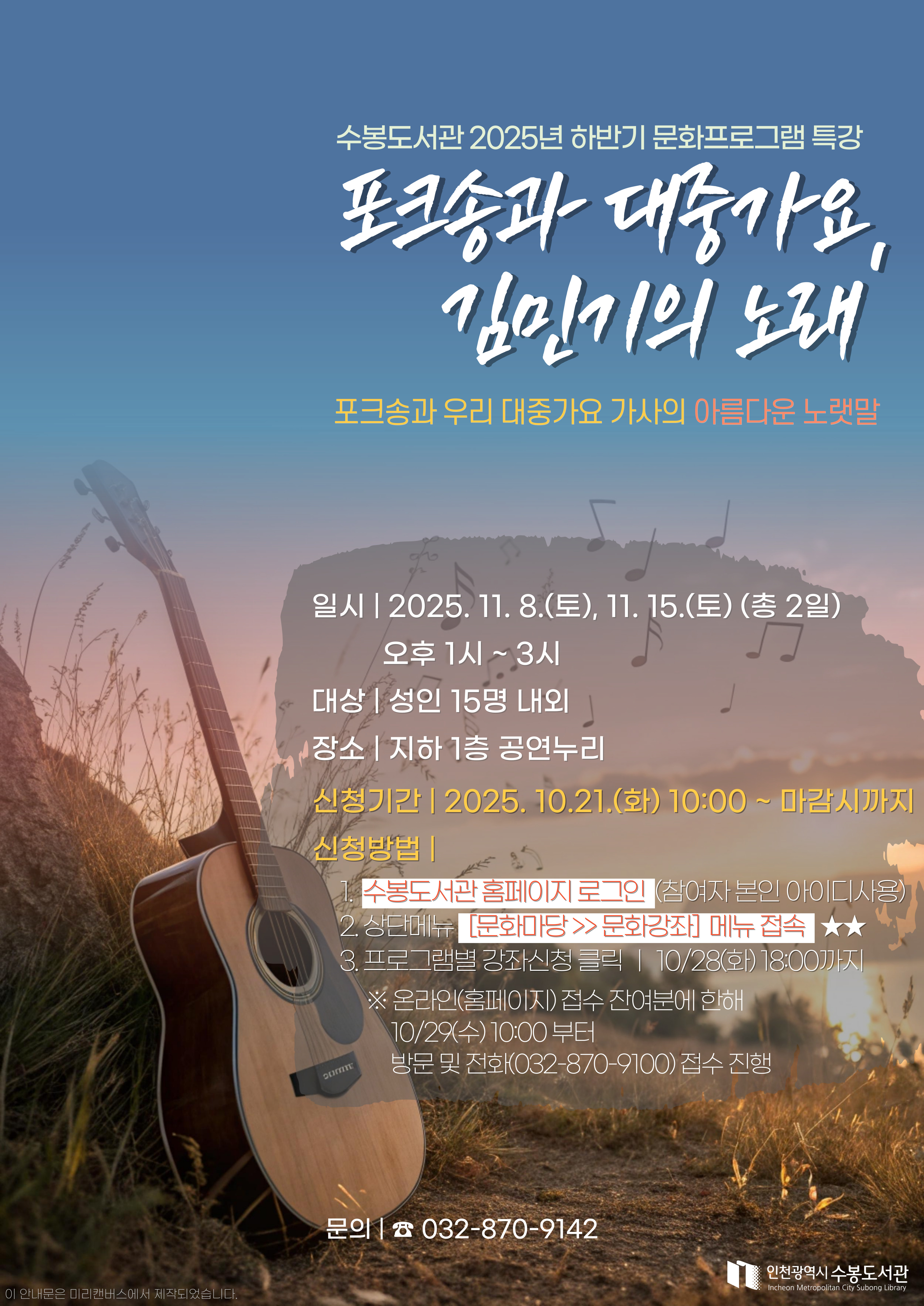 모집│포크송과 대중가요, 김민기의 노래 문화프로그램 특강 참여자 모집